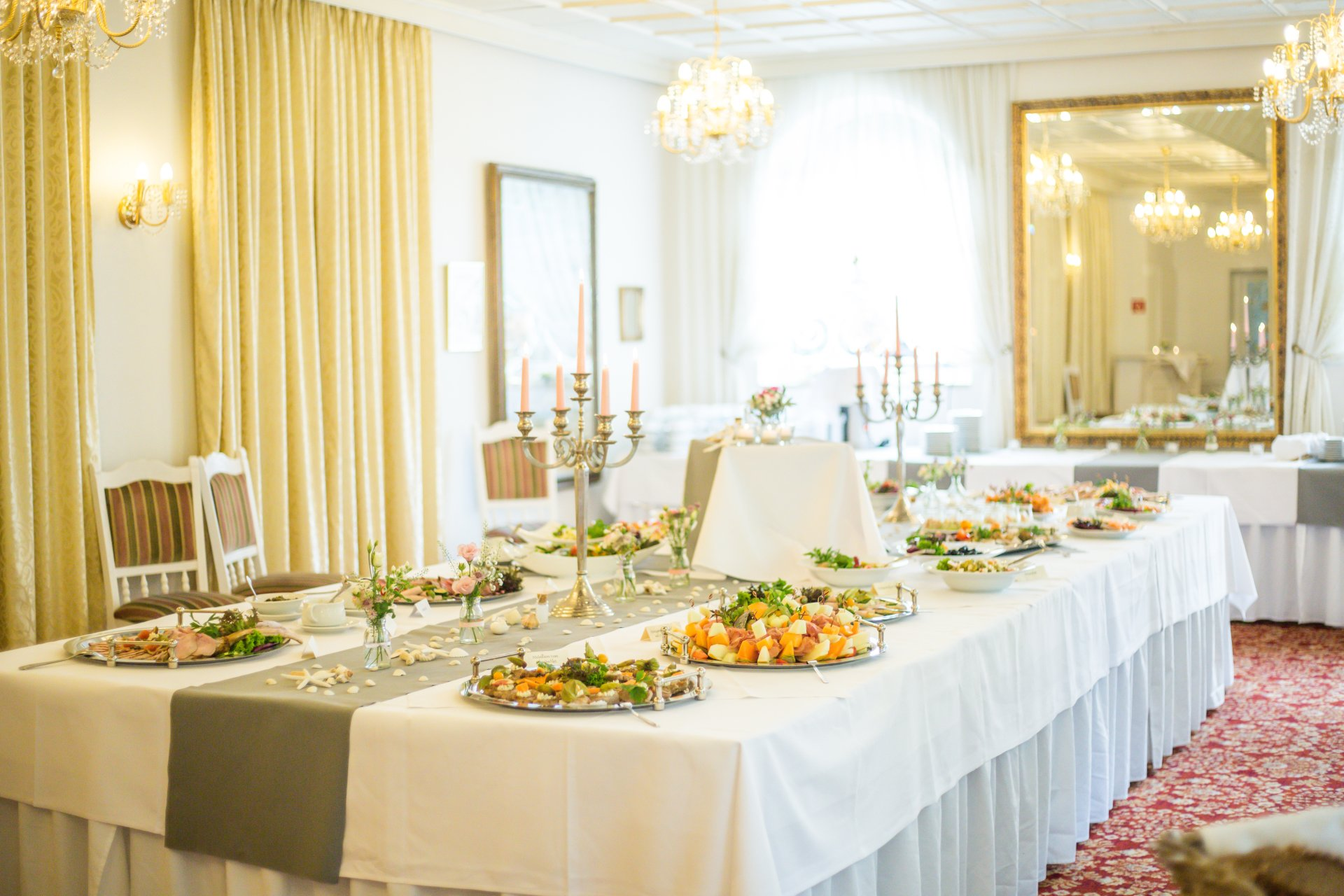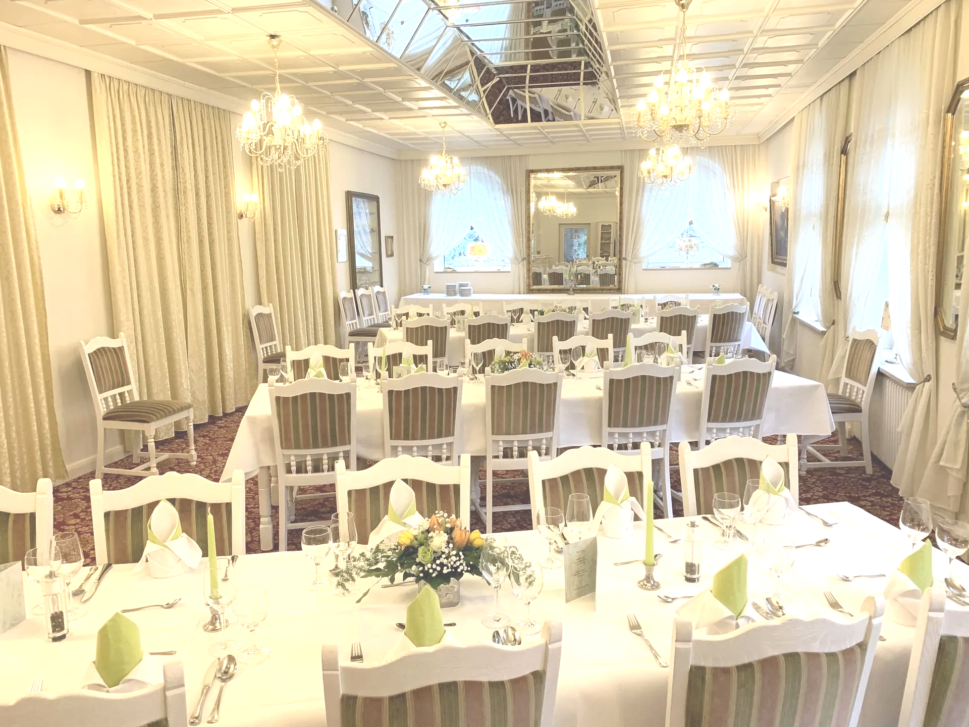 Kristallspiegel an den Wänden untermalen zusätzlich den besonders festlichen Rahmen dieses Saales in dem wir zwischen 30 und 50 Platz finden.